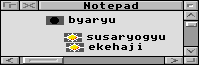 Intrinsic to the use of Astrophel is the ability of dragging an object from one place, ie the Galaxy window, over to another display, ie the Notepad window. Wherever you see an iconic reference to an object you should be able to grab it, and drag it off someplace else.