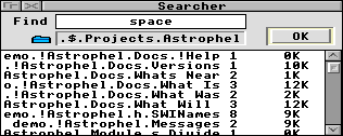 | searcher.arc | 0.01 (02-Nov-1994) 7k Archimedes Spark distribution file, Public Domain. |